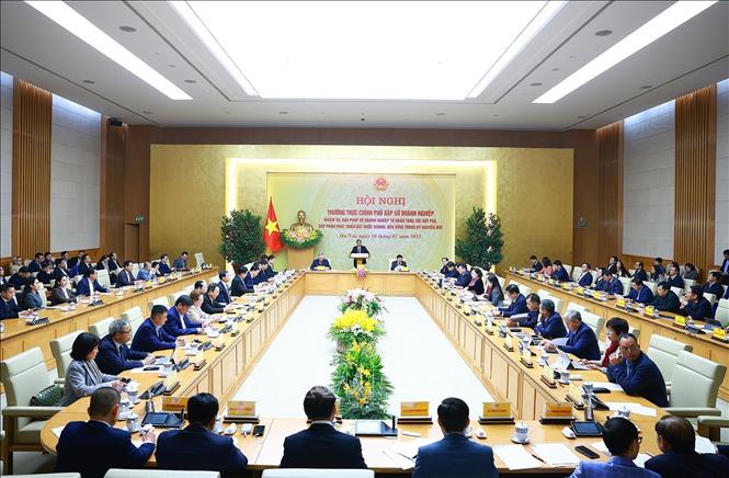 Sáng 10-2, tại trụ sở Chính phủ, Thủ tướng Chính phủ Phạm Minh Chính chủ trì Hội nghị Thường trực Chính phủ gặp gỡ doanh nghiệp về nhiệm vụ, giải pháp để doanh nghiệp tư nhân tăng tốc, bứt phá, góp phần phát triển đất nước nhanh và bền vững trong kỷ nguyên mới.