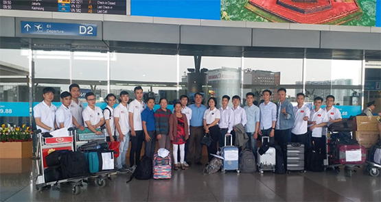 | Phó Tổng Cục trưởng Tổng cục GDNN Đỗ Năng Khánh cùng các thí sinh trước giờ sang Thái Lan |