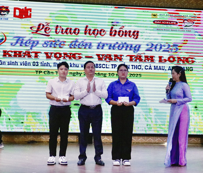 Chiều 20-10-2025, Báo Tuổi Trẻ phối hợp với Thành đoàn Cần Thơ và Trường Đại học Nam Cần Thơ tổ chức Lễ trao học bổng “Tiếp sức đến trường” năm 2025, với chủ đề “Một khát vọng – Vạn tấm lòng”.