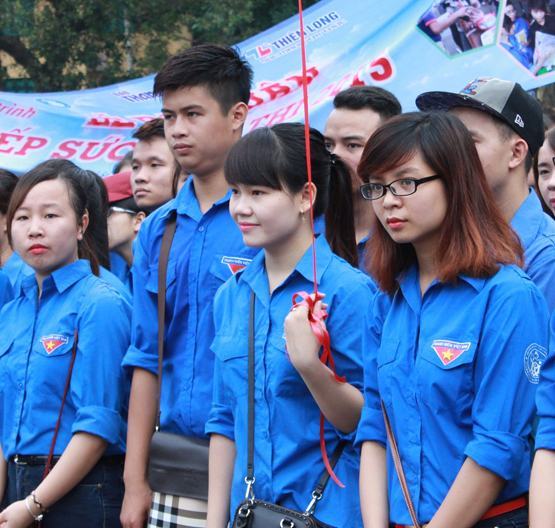 | Các tình nguyện viên ra quân tiếp sức mùa thi. Ảnh: I.T |