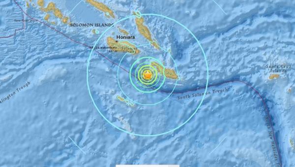 Trận động đất xảy ra vào lúc 6 giờ 10 phút giờ địa phương (tức 2 giờ 10 phút theo giờ Hà Nội). Theo Cơ quan Khảo sát Địa chất Mỹ (USGS), tâm chấn của trận động đất nằm ở độ sâu 10 km, cách thành phố Kirakira của Solomon 90 km về phía Tây. Ít có khả năng xảy ra thương vong và thiệt hại sau trận động đất này.