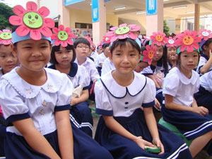 Học sinh Trường Tiểu học Lê Đình Chinh, Q.11, TP.HCM trong ngày khai giảng năm học mới. Ảnh: Q.Huy