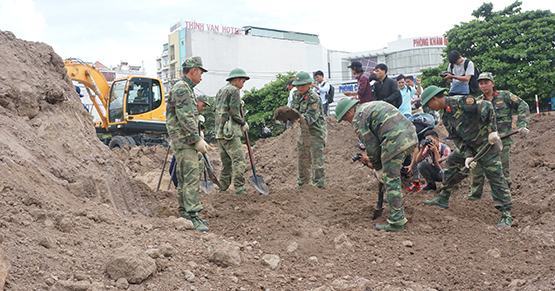 | Các lực lượng chức năng đang tìm kiếm hài cốt các liệt sĩ tại phía Tây Sân bay Tân Sơn Nhất. Ảnh: Q.H |