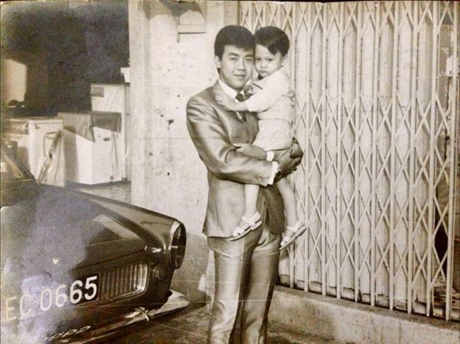 Nghệ sĩ Hữu Châu được nghệ sĩ Bảo Quốc ẵm trước nhà phía đường Trần Hưng Đạo. Anh gọi cố nghệ sĩ là "má Ba". Ảnh: Tư liệu của Nghệ Sĩ Hữu Châu
