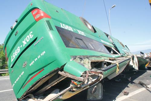 ![]() Chiếc xe khách bị biến dạng sau vụ tai nạn |