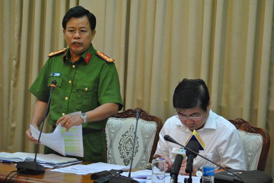 | Tại cuộc họp chiều 16-8, Đại tá Trần Đức Tài – Phó Giám đốc Công an TP – cho biết: Công an TP sẽ xử lý mạnh các vụ phóng nhanh vượt ẩu, chạy lấn tuyến… trong thời gian tới. Ảnh: Q.Huy |