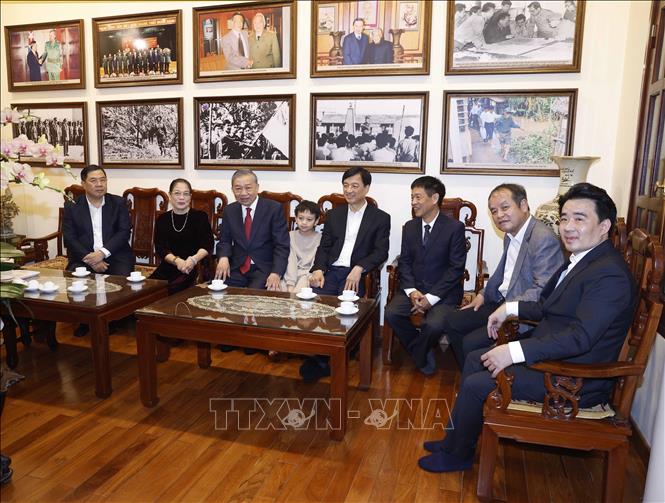 Tổng Bí thư Tô Lâm thăm hỏi thân nhân Đại tướng Võ Nguyên Giáp. Ảnh: Thống Nhất/TTXVN