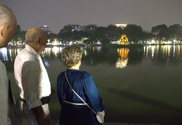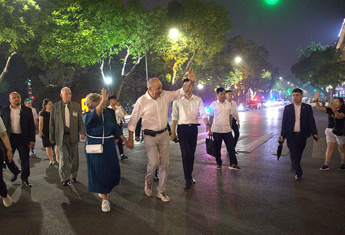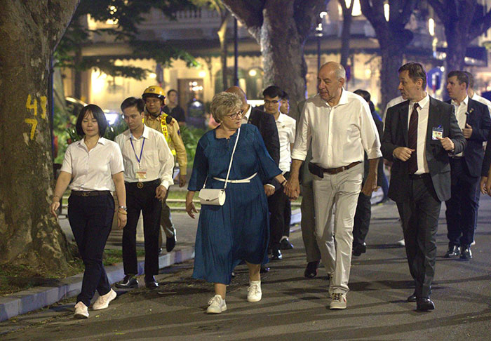 Tối 27-5-2025, ngay khi vừa đến Hà Nội, Tổng thống Hungary Sulyok Tamás và Phu nhân đi dạo, ngắm cảnh một số tuyến phố quanh khu vực hồ Hoàn Kiếm.