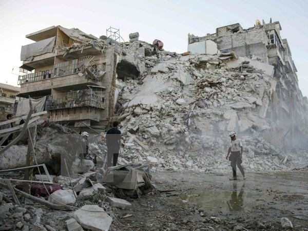 Cảnh đổ nát do xung đột ở Qatarji, ngoại ô thành phố Aleppo ngày 17/10. (Nguồn: AFP/TTXVN)