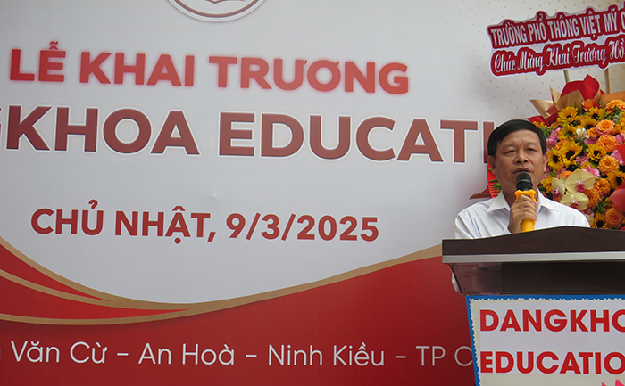 Phát biểu tại buổi lễ, thầy Nguyễn Hữu Định – Trưởng phòng Quản lý chất lượng Giáo dục, Sở GD-ĐT TP.Cần Thơ, cho biết: “TP.Cần Thơ có 117 trung tâm ngoại ngữ – tin học, trong đó, thông qua chương trình hợp tác với các trường mầm non và tiểu học, trung học để giảng dạy tiếng Anh cho học sinh (HS), Trung tâm Anh ngữ Đăng Khoa đã nổi bật trong việc tiên phong đổi mới phương pháp dạy và học tiếng Anh bằng cách ứng dụng 100% công nghệ hiện đại, kết hợp giữa trí tuệ nhân tạo (AI), thực tế ảo (VR), thực tế tăng cường (AR) và các nền tảng học tập trực tuyến tiên tiến… Ngoài công nghệ, trung tâm còn chú trọng xây dựng một môi trường học tập cởi mở, nơi mỗi học viên đều có cơ hội phát triển toàn diện về ngôn ngữ lẫn tư duy sáng tạo”.