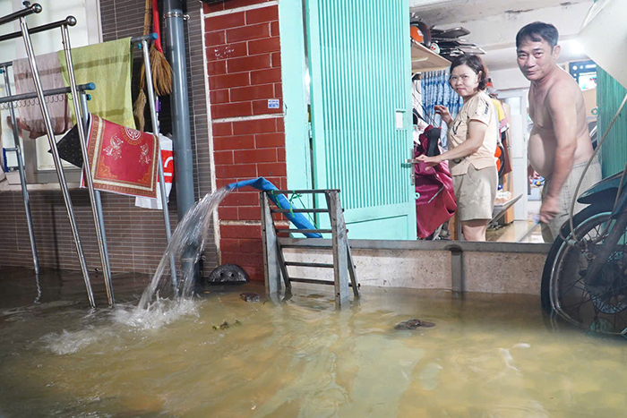 Đến rạng sáng 25-10, nước vẫn chưa rút hoàn toàn. Nhiều người dân Bình Quới vẫn cặm cụi kê đồ, bơm nước trong ánh đèn mờ, mong trời sớm sáng để bắt đầu lại một ngày mới giữa căn nhà ẩm ướt.