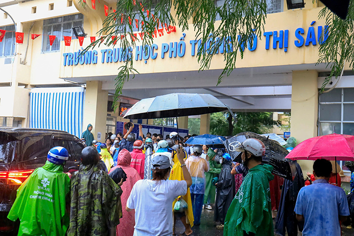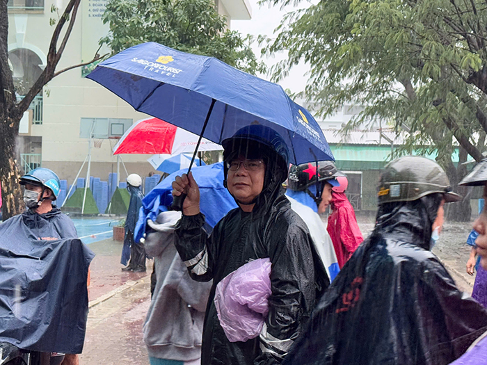 Tại điểm thi Trường THPT Võ Thị Sáu (quận Bình Thạnh), hình ảnh những người cha, người mẹ ướt sũng dưới mưa, vẫn kiên nhẫn chờ con bước ra khỏi phòng thi, khiến nhiều người không khỏi xúc động. Có người đứng nép dưới tán cây, có người co mình dưới mái hiên, có người chẳng tìm chỗ trú, cứ đứng thẳng dưới mưa – ánh mắt luôn hướng về cánh cổng trường. Không một ai than phiền. Với họ, chỉ cần con khỏe mạnh, bình an, mọi bất tiện đều trở nên nhỏ bé.