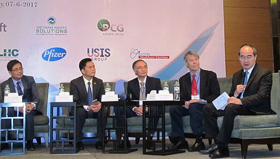 Trao đổi với các DN, Bí thư Thành ủy Nguyễn Thiện Nhân chia sẻ môi trường xã hội, chính trị tại Việt Nam ổn định nhiều năm qua sẽ giúp ổn định cho các nhà đầu tư và hiện nay là thời điểm khá thuận lợi.