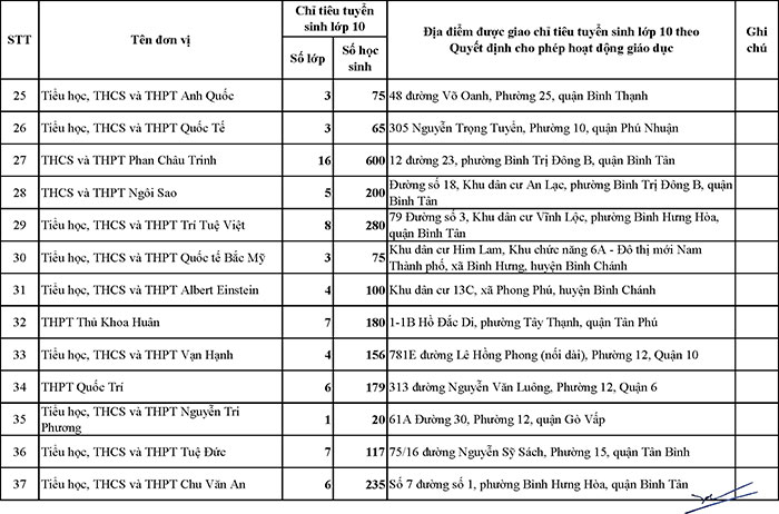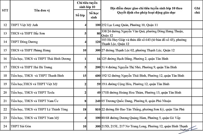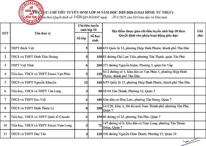 Cụ thể, danh sách các trường THPT ngoài công lập được Sở GD-ĐT TP.HCM phê duyệt giao chỉ tiêu tuyển sinh vào lớp 10 năm học 2025-2026 như sau: