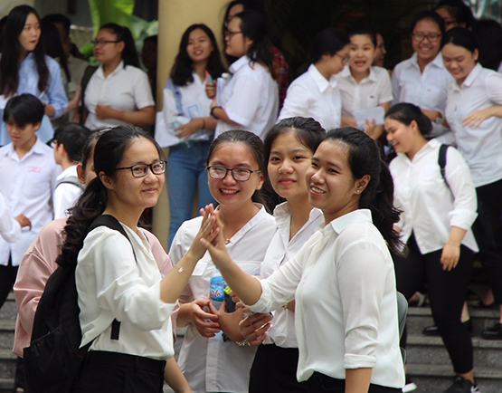 | Những thí sinh tại điểm thi THPT Trần Phú (Đà Nẵng) thoải mái sau thi môn Ngữ văn. Ảnh: V.Yên |