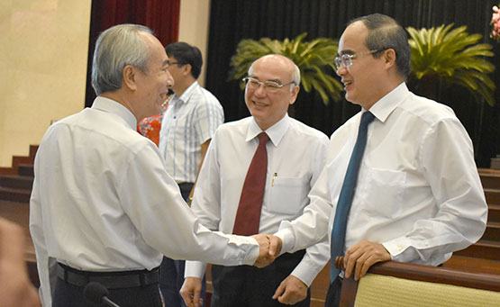 Bí thư Thành y TP.HCM Nguyn Thin Nhân (bìa phi) trao đi cùng các đi biu bên l hi tho