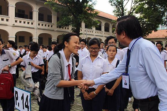 Giám đốc Sở GD-ĐT TP.HCM Lê Hồng Sơn động viên thí sinh trước giờ vào làm bài thi môn ngữ văn