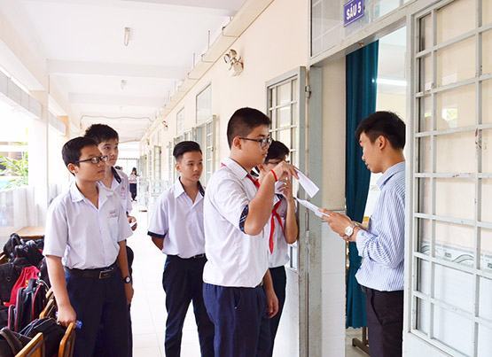 TS tại điểm thi Trường THCS Nguyễn Huệ, Q.12 làm thủ tục chuẩn bị vào phòng thi
