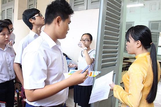 Sáng nay, TS dự thi môn ngữ văn (120 phút), chiều nay sẽ dự thi môn tiếng Anh (60 phút). Ngày mai (ngày 3-6), TS tiếp tục dự thi môn toán và chiều cùng ngày những TS thi vào trường chuyên, lớp chuyên sẽ dự thi thêm môn chuyên. Các bài thi chuyên ở môn hóa là 120 phút, các môn khác là 150 phút.