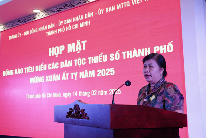 Phát biểu tại buổi họp mặt, Phó Bí thư Thành ủy, Chủ tịch Ủy ban MTTQ Việt Nam TP.HCM Nguyễn Phước Lộc đã gửi lời chúc mừng năm mới đến với các đại biểu; đồng thời nhấn mạnh, vai trò quan trọng của khối đại đoàn kết toàn dân tộc trong việc xây dựng và phát triển TP. Đồng thời khẳng định sự quan tâm đặc biệt của lãnh đạo TP đối với cộng đồng đồng bào dân tộc thiểu số cũng như ghi nhận những đóng góp to lớn của các cá nhân, tổ chức trong cộng đồng.