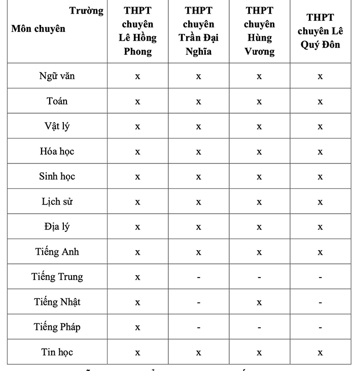 Thí sinh đăng ký bài thi chuyên Anh (theo Đề án 5695) và không học tích hợp (theo Đề án 5695) ở cấp THCS cần liên hệ 2 Trường THPT chuyên Lê Hồng Phong và THPT chuyên Trần Đại Nghĩa để tìm hiểu và được tư vấn đầy đủ về mô hình học tập, học phí và cách chọn môn tự chọn theo Chương trình GDPT 2018 nếu trúng tuyển.