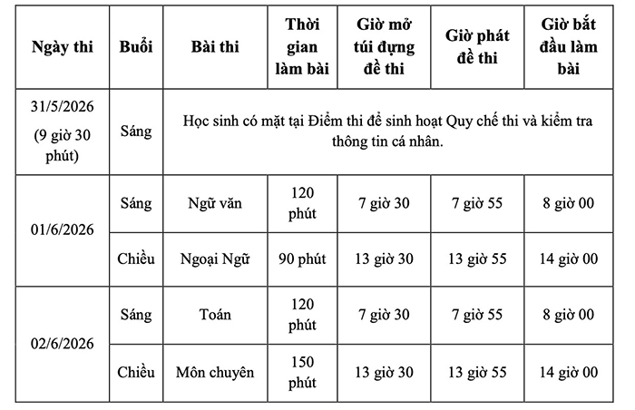 – Chuyên Anh (theo Đề án 5695): Thí sinh dự thi thực hiện 1 bài thi môn chuyên Anh theo Đề án 5695 gồm tiếng Anh và toán, khoa học bằng tiếng Anh. Khuyến khích thí sinh đã học chương trình tiếng Anh theo Đề án 5695 ở cấp THCS đăng ký.
