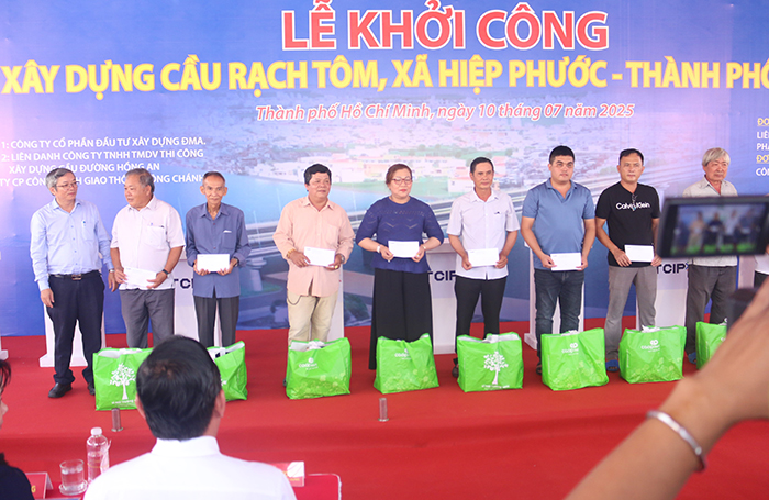 Sáng 10-7, Ban Quản lý dự án đầu tư xây dựng các công trình giao thông TP.HCM đã tổ chức khởi công dự án xây dựng cầu Rạch Tôm trên địa bàn xã Hiệp Phước, TP.HCM.