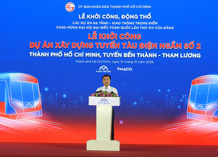 Sáng 15-1, UBND TP.HCM tổ chức lễ khởi công dự án Metro số 2 (Bến Thành – Tham Lương), một trong 4 dự án trọng điểm được thành phố khởi công, động thổ trong giai đoạn đầu năm 2026. Tuyến Metro có tổng chiều dài gần 11,27km, trong đó 9,3km đi ngầm và khoảng 2km đi trên cao.