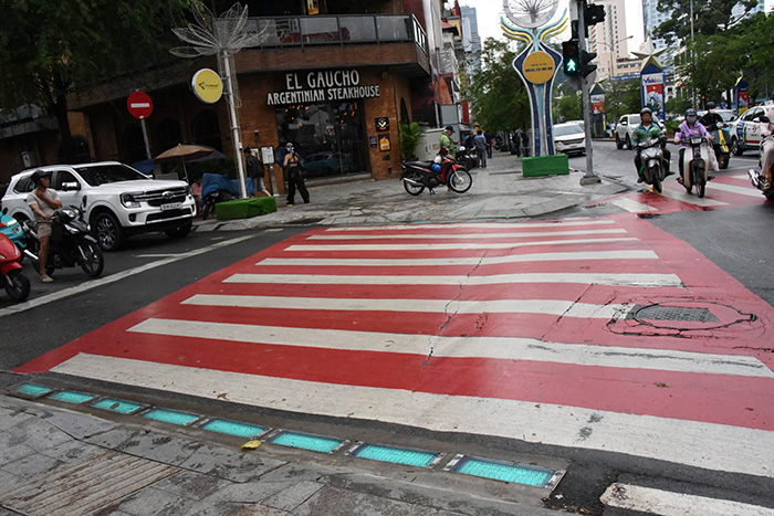Song song với việc triển khai đèn âm vỉa hè, TP.HCM cũng áp dụng nhiều giải pháp nhằm nâng cao an toàn cho người đi bộ như nâng mặt đường tại các giao cắt, kẻ sơn phản quang trắng – đỏ để tăng nhận diện, bổ sung biển cảnh báo và chỉ dẫn giao thông.
