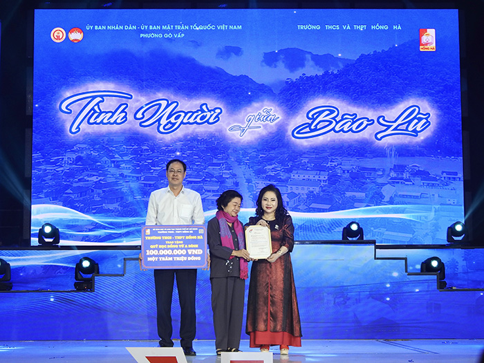 Tối 6-12, chương trình ca nhạc từ thiện “Tình người giữa bão lũ” do Ủy ban nhân dân và Ủy ban Mặt trận Tổ quốc Việt Nam phường Gò Vấp và Trường THCS – THPT Hồng Hà tổ chức đã diễn ra trong không khí ấm áp, hướng về đồng bào đang chịu thiệt hại nặng nề do mưa bão tại nhiều tỉnh miền Trung và Tây Nguyên.