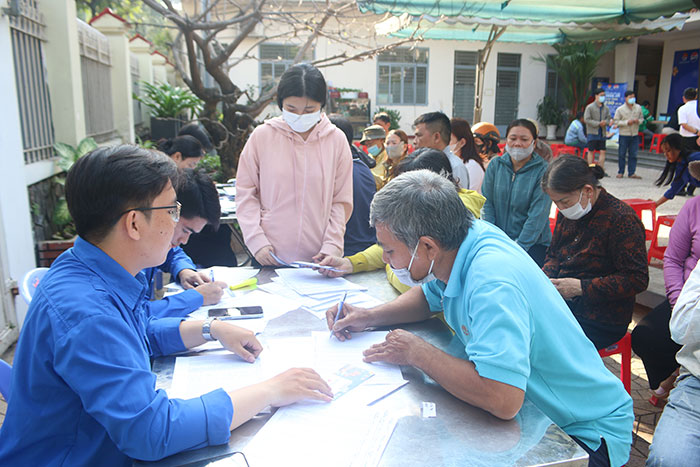 Người lao động khó khăn làm thủ tục nhận vé xe miễn phí