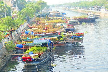 2.Chợ hoa xuân “Trên bến dưới thuyền” năm nay tiếp tục diễn ra tại Bến Bình Đông (Q.8). Chợ hoa năm nay có trên 500 nhà vườn từ các tỉnh thành của đồng bằng sông Cửu Long và các quận trên địa bàn TP đến tham gia kinh doanh, trưng bày những sản phẩm với nhiều chủng loại cây, hoa kiểng phong phú, mới lạ đầy màu sắc phục vụ nhu cầu thưởng lãm, mua cây, hoa kiểng của người dân TP. Bên cạnh đó, chợ hoa còn có các hội thi như: Hội thi nhà hoa với chủ đề “Sắc xuân”, hội thi Gói và trưng bày bánh tét, hội thi Chưng mâm hoa ngũ quả, hội thi ảnh chủ đề “Sum họp gia đình ngày Tết” và hội thi ảnh nghệ thuật “Trên bến dưới thuyền” lần thứ 9 cùng nhiều hoạt động ý nghĩa khác góp phần tạo nên nét truyền thống đậm đà bản sắc dân tộc. Chợ hoa được tổ chức từ ngày 15 đến 29 Tết.