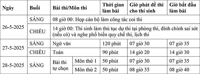 Thời gian thi thử tốt nghiệp THPT ngày 26, 27 và 28-5-2025 như sau: