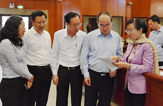 Để thực hiện nghiêm túc chỉ đạo của Bộ Chính trị tại Kết luận số 21-KL/TW và NQ 54 của Quốc hội, Bí thư Nguyễn Thiện Nhân nhấn mạnh, Ban Thường vụ Thành ủy tiếp tục lãnh đạo Đảng đoàn HĐND TP chuẩn bị trình HĐND TP quyết định các nội dung được quy định tại NQ; xây dựng kế hoạch triển khai NQ, trong đó phải xác định nội dung công việc, danh mục các đề án, chương trình, tiến độ thực hiện 3 năm (2018, 2019, 2020). Thực hiện tốt quy chế lấy ý kiến nhân dân thông qua mặt trận tổ quốc, các tổ chức chính trị – xã hội và các cơ quan có liên quan nhằm bảo đảm cơ chế, chính sách được ban hành đáp ứng kịp thời yêu cầu phát triển TP nhanh hơn, bền vững hơn. Đồng thời, thực hiện tốt chức năng, nhiệm vụ giám sát UBND các cấp, các cơ quan liên quan trong quá trình triển khai thực hiện thí điểm các cơ chế, chính sách đặc thù phát triển TP theo NQ 54 của Quốc hội…