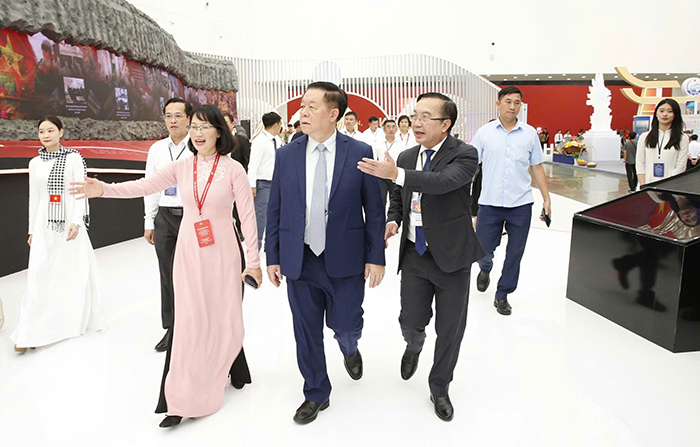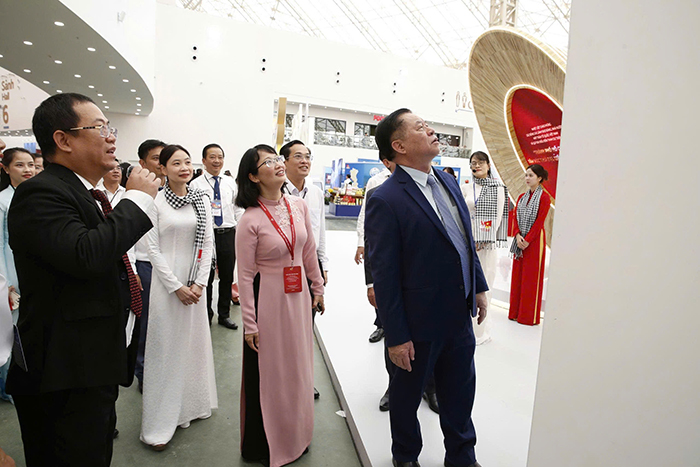 Ông Nguyễn Trọng Nghĩa  – Trưởng Ban Tuyên giáo và Dân vận Trung ương tham quan khu trưng bày triển lãm của TP.HCM
