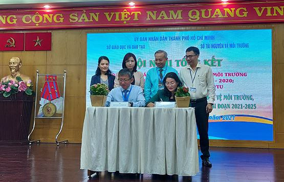 Dịp này, Sở GD-ĐT TP.HCM và Sở Tài Nguyên và Môi trường TP.HCM đã thực hiện ký kết Kế hoạch phối hợp trong công tác bảo vệ môi trường, giáo dục truyền thông về bảo vệ môi trường trong giai đoạn 2021-2022. Đồng thời, Sở GD-ĐT TP.HCM cũng đã tiến hành khen thưởng 37 đơn vị trường học ở các cấp học đã có nhiều cách làm sáng tạo trong xây dựng Trường học xanh, trao giấy chứng nhận Trường học xanh cho nhiều đơn vị.