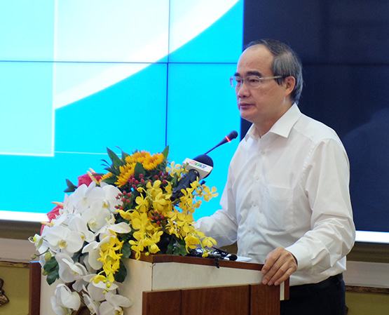 Bí thư Thành ủy TP.HCM Nguyễn Thiện Nhân phát biểu tại hội nghị
