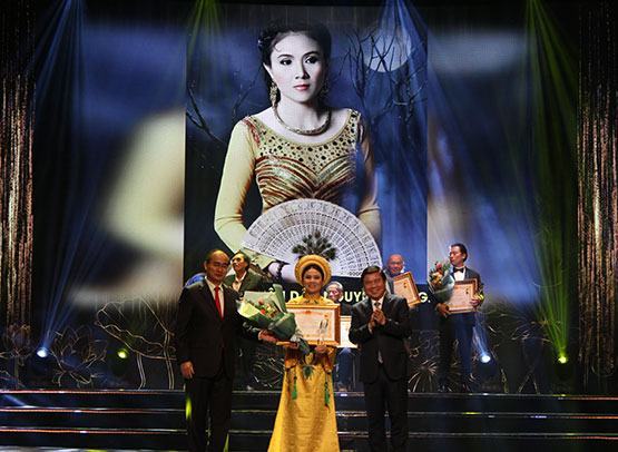 Bí thư Thành ủy TP.HCM Nguyễn Thiện Nhân và Chủ tịch UBND TP.HCM Nguyễn Thành Phong trao danh hiệu NSND cho nghệ sĩ Thanh Ngân