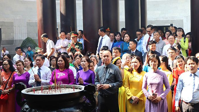 Sau phần nghi thức niệm hương, dâng trầm, dâng rượu và đọc chúc văn, lãnh đạo TP.HCM cùng các đại biểu đã thành kính dâng hương tưởng nhớ công lao của các bậc tiền nhân. Đoàn đại biểu sau đó tham gia diễu hành từ cổng Nghi môn qua các tuyến đường nội khu đến khu vực sân lễ, tạo nên không khí trang nghiêm, gắn kết cộng đồng.