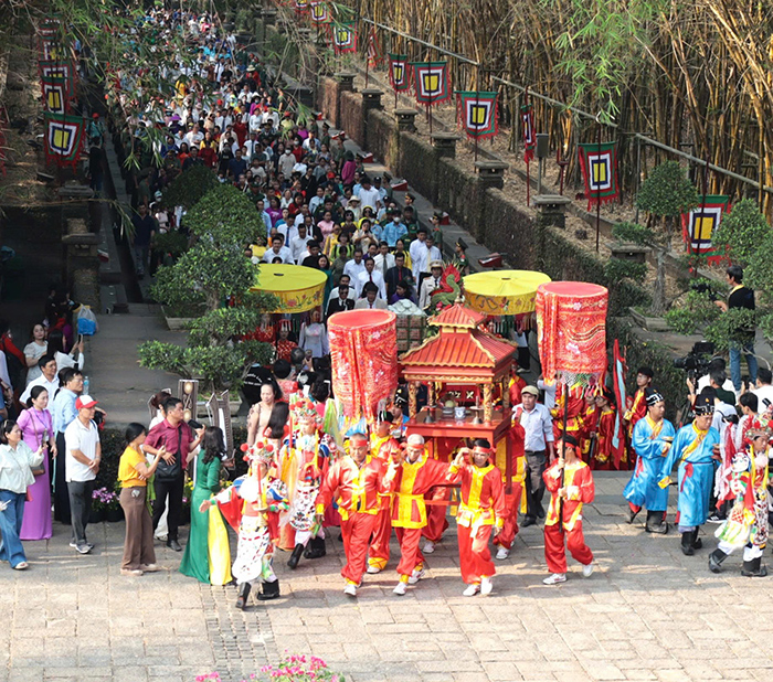 Buổi lễ diễn ra trong không khí trang nghiêm, mở đầu bằng chương trình nghệ thuật mang đậm bản sắc dân tộc, tái hiện truyền thống thời đại Hùng Vương. Tiếp đó là nghi thức rước lễ với các đoàn rước hoa, lễ vật truyền thống như bánh chưng, bánh giầy, cùng đội hình múa rồng, trống chiêng và các nghi trượng cổ truyền.