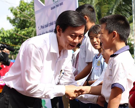 Học sinh nghèo được trao tặng học bổng. Ảnh: TD