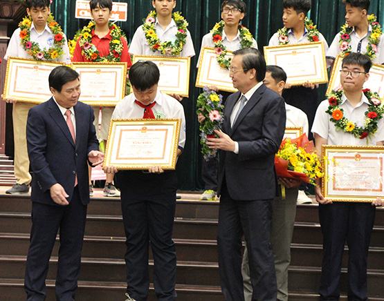 Lãnh đạo TP.HCM, lãnh đạo Sở GD-ĐT TP.HCM trao bằng khen cho HSG