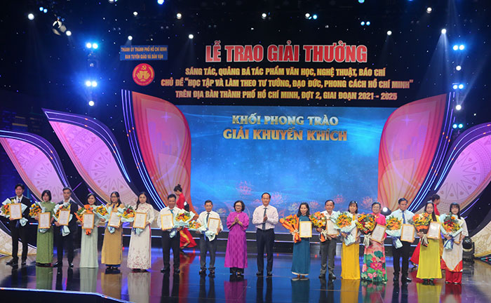 Trong khuôn khổ lễ trao giải, Ban tổ chức đã chúc mừng các tác giả, tác phẩm của TP.HCM đã xuất sắc đạt Giải thưởng sáng tác, quảng bá tác phẩm văn học, nghệ thuật, báo chí về chủ đề “Học tập và làm theo tư tưởng, đạo đức, phong cách Hồ Chí Minh”đợt 2, giai đoạn 2021-2025 do Ban Tuyên giáo và Dân vận Trung ương tổ chức.