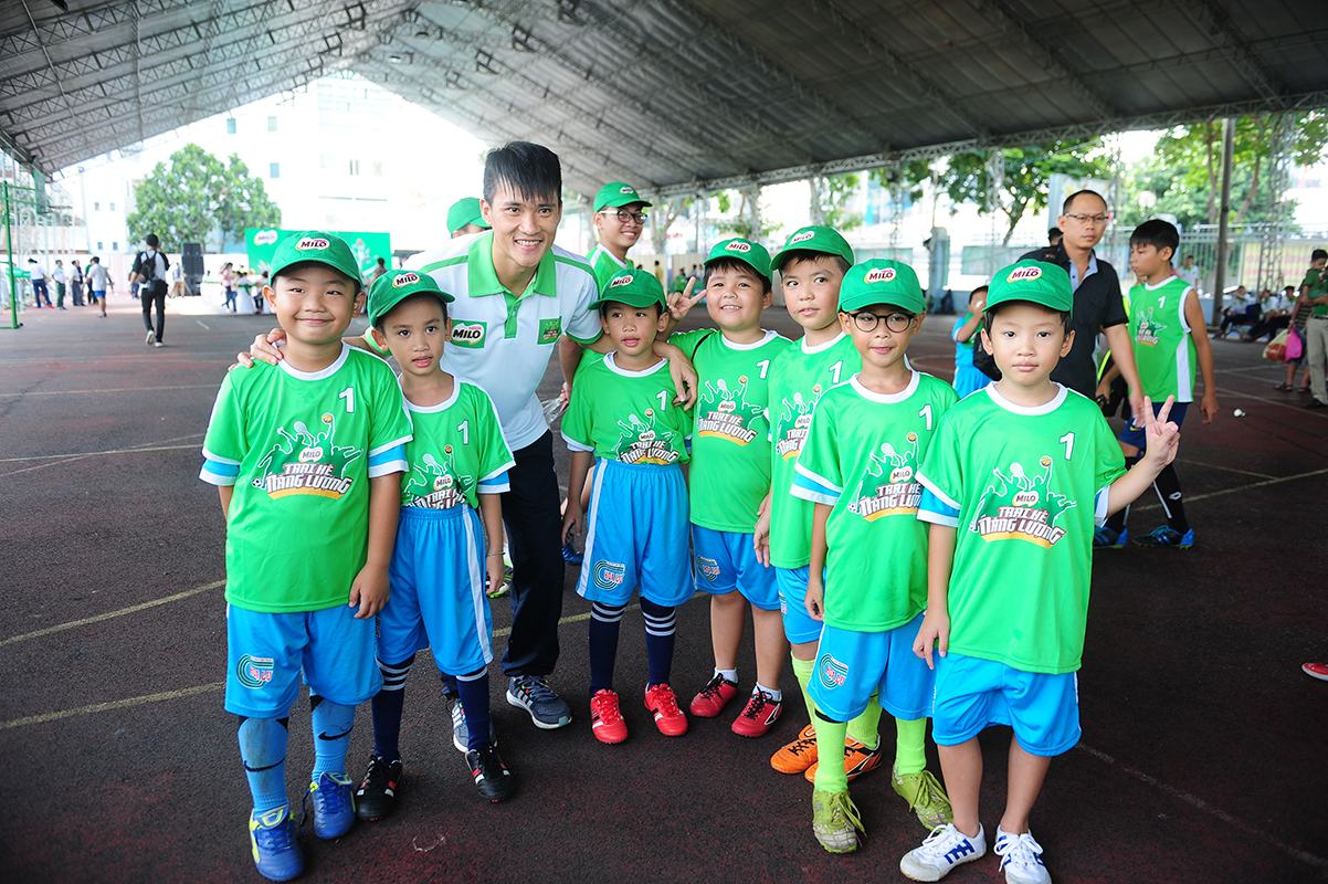 Công Vinh chụp hình cùng người hâm mộ nhí