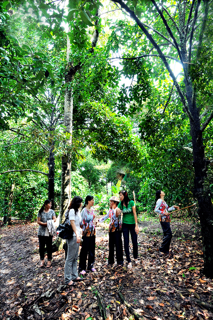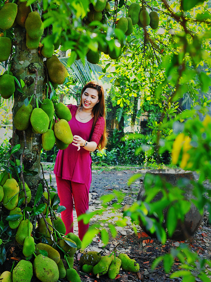 Du khách đến với những vườn cây ăn trái nơi đây, ngoài việc thưởng ngoạn không gian sông nước hữu tình của vùng quê yên bình bên bờ tả sông Sài Gòn, còn được thưởng thức nhiều loại trái cây vừa chín tới tại vườn nhà.