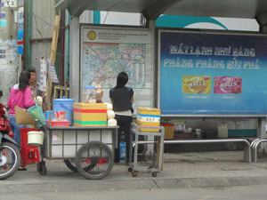 Nhà chờ xe buýt bao lâu nay cũng là địa bàn hoạt động của nhiều bác tài xe ôm. Có vài bác tài trong khi chờ khách ở nhà chờ trên đường Xô Viết Nghệ Tĩnh, gần chợ Thị Nghè (phường 19, quận Bình Thạnh) đã ngang nhiên lấn chiếm cả khu vực hành khách chờ xe