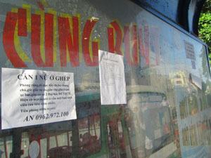Nhà chờ trên đường Ung Văn Khiêm, phường 25, quận Bình Thạnh luôn xuất hiện nhiều tấm “áp phích” với đủ các nhu cầu về “tìm người ở ghép, tuyển nhân viên phát tờ rơi, cho thuê phòng trọ giá rẻ…” được dán lung tung lên “bảng quảng cáo chính quy”. |