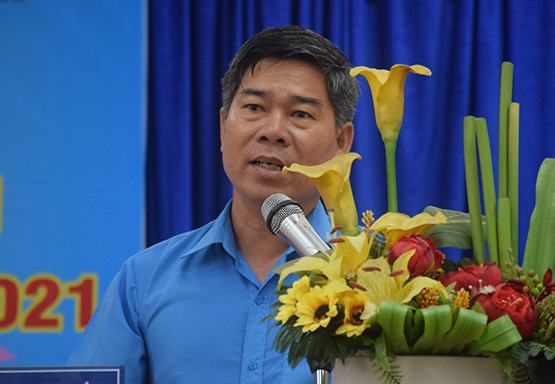 Ông Phạm Chí Tâm – Phó Chủ tịch Liên đoàn Lao động TP phát biểu tại Lễ trao học bổng