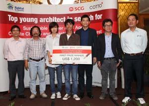 Tập đoànSCG và Tổ chức Habitat for Humanity Việt Nam vừa công bố các ý tưởng đoạt giải cuộc thi thiết kế “Ngôi nhà thích ứng trong thời đại biến đổi khí hậu và thiên tai” dành cho SV các trường ĐH tại Việt Nam.Cuộc thi nhằm tìm kiếm các giải pháp xây nhà sáng tạo, giúp người dân sống trong vùng chịu ảnh hưởng của thiên tai có một ngôi nhà bền vững với kinh phí hợp lý (dưới 100 triệu đồng). Có 6 đội được chọn vào vòng chung kết; tại đây các đội phải thuyết trình trước Ban giám khảo giải pháp xây dựng nhà tốt nhất đáp ứng các tiêu chí như: Khả năng chịu được khí hậu khắc nghiệt, sử dụng các vật liệu có sẵn ở địa phương phù hợp và hiệu quả, thiết kế đơn giản và dễ dàng xây dựng… Kết quả: Giải nhất(25 triệu đồng và 1 chuyến đi Thái Lan) thuộc về đội 14A1 (ĐH Văn Lang) với ý tưởng “Bên kia chợ nổi”; giải nhì là đội TKD (ĐH Văn Lang) với ý tưởng “Nhà vách lật”; đồng giải ba: Đội DMT (ĐH Văn Lang) với ý tưởng “Chuyện nhà mùa nước nổi” và đội Nhóm 3 (ĐH Kiến trúc TP.HCM) với ý tưởng “Nhà của gia đình”. Cuộc thi được phát động vào tháng 11-2012, Ban tổ chức đã nhận được gần 30 ý tưởng từ các sinh viên tài năng.