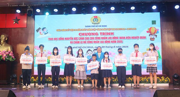 Sáng 9-8, Tổ công tác Quản lý địa bàn số 1 (Liên đoàn Lao động TP.HCM) đã tổ chức chương trình trao học bổng Nguyễn Đức Cảnh và chăm lo cho nữ công nhân lao động có hoàn cảnh khó khăn năm 2025.